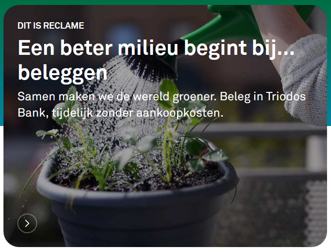 Het blijkt dus dat veel mensen graag wat doen voor milieu of duurzaamheid, ook als dat een iets mindere bankervaring oplevert. Overigens zijn de verschillen in de kosten tegenwoordig vrij klein. Zo rekent Triodos een paar euro per maand meer voor hun particuliere bankpakket dan grote banken en krijg je tegenwoordig overal geen rente op de spaarrekening. Op jaarbasis is Triodos dus hooguit een paar tientjes duurder dan een ING pakket.